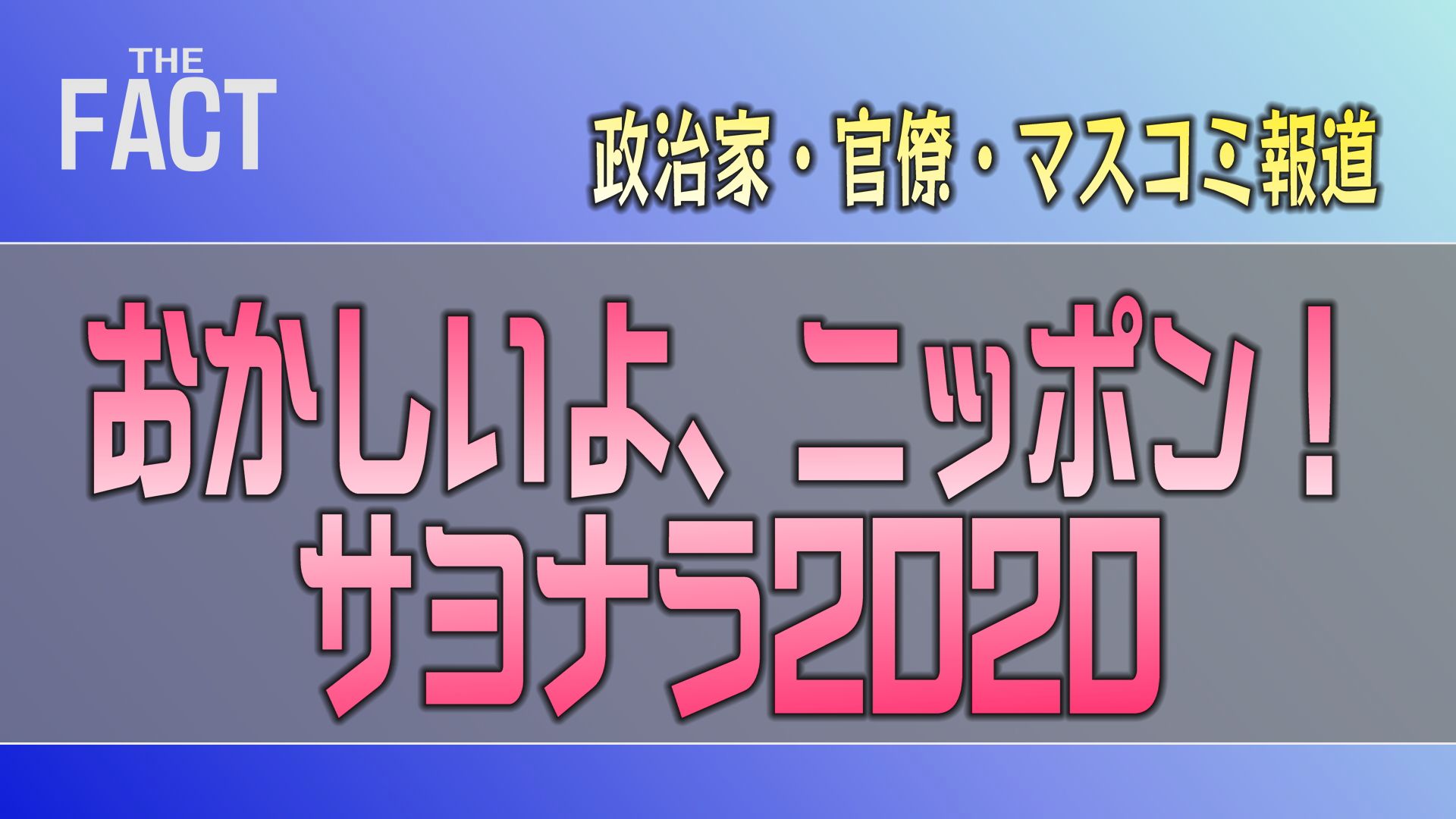 新着記事 なぜ「政治とカネ」の問題はなくならないのか?そのキーワードは「画皮」! 【ザ・ファクト】 2021.04.08 | 政治 「政治とカネ」を巡る問題について人々の思いとは 今、日本が「政治とカネ」を巡る問題で大きく揺れている。4月には、3つの補欠・再選挙が予定されているが このうち参議院広島選挙区と衆議院北海道2区は汚職問題をきっかけにした選… 続きを読む データで見る中国経済の「闇」~中国共産党政権崩壊のカウントダウン!?(ゲスト:相馬勝氏)【ザ・ファクト】 2021.03.27 | 中国, 台湾, 政治, 経済 3月に開かれた中国全人代で、2021年のGDP成長率目標は6%以上と設定された。しかし、5か年計画の目標は明示されない異例な展開となった。中国経済は今、どうなっているのか?本当に6%成長をするだけの力があるのか?今回、最… 続きを読む 【RCEP協定】中国デジタル人民元の「世界支配計画」に騙されるな!【ザ・ファクト×及川幸久氏】 2021.02.27 | 中国, 外交, 政治, 経済 2月24日、日中韓や東南アジア諸国連合(ASEAN)など計15カ国で構成される東アジア地域包括的経済連携(RCEP)協定案が閣議決定されました。この協定は「中国主導アメリカ抜きの協定」ですが、協定の問題点である「デジタル… 続きを読む 人権弾圧下の中国で北京冬季五輪!?弾圧を受ける活動家たちがボイコットの訴え!【ザ・ファクト】 2021.02.10 | ウイグル・チベット・南モンゴル, 中国, 人権問題, 香港 来年2022年に開催が予定されている北京冬季五輪開催を巡り世界中で開催是非を問う動きが広がっています。果たして、北京2022年冬季五輪は開催すべきなのか。日本でも森会長の「女性蔑視発言」で揺れるオリンピック問題をザ・ファ… 続きを読む 文在寅、支持率低下でまた反日!年初から続く韓国の反日攻勢の意味するところとは?【ザ・ファクト】 2021.01.14 | 外交, 韓国 「慰安婦訴訟で日本政府に賠償判決」、「日本のEEZ内での海上保安庁の海洋調査の中止要求」など、年初から立て続けに韓国政府による反日攻勢が続いています。もともと反日色の強い文在寅政権ですが、なぜここにきて反日攻勢を繰り返す… 続きを読む バイデン大統領誕生でアメリカの民主主義は崩壊する!?【ザ・ファクト×ロバート・エルドリッヂ氏】 2021.01.12 | アメリカ, 政治 バイデン大統領誕生で、これからのアメリカはどこに向かっていくのか?政治学者のロバート・エルドリッヂ氏に「経済」「民主主義」「政界再編」の3つの視点から、アメリカのこれからについて聞きました。 【ロバート・エルドリッヂ氏】… 続きを読む 【現地映像第二弾!】中国政府の南モンゴル弾圧の歴史~明るみに出始めた南モンゴルの実態~【ザ・ファクト】 2021.01.02 | ウイグル・チベット・南モンゴル, 中国, 人権問題 南モンゴル(中国・内モンゴル自治区)の小学校と中学校では、新学期が始まった2020年9月1日からモンゴル語を廃止して、中国語で教育が行われている。 これに対して、日本でも南モンゴル出身者が抗議の声を上げるなど、モンゴル民… 続きを読む 「政治家・官僚・マスコミ報道」おかしいよニッポン!サヨナラ2020【ザ・ファクト】 2020.12.30 | 政治 ザ・ファクトをご覧の皆様、今年も一年、ご視聴いただき誠にありがとうございました!今年も残すところあとわずか。ザ・ファクト年末恒例の「今年一年振り返り」として、今年特に気になった「ニッポンの問題点」をザ・ファクトキャスター… 続きを読む 【2023年2月21日に返還決定】「さよなら、香香」“国民的アイドル”中国へ返還 ~シャンシャンの本当の故郷とは?【ザ・ファクト】ロングバージョン 2020.12.10 | ウイグル・チベット・南モンゴル, 中国, 外交, 政治 ※2021年12月17日に「ロングバージョン」として、動画では公開しなかった部分も含めて、文章を大幅加筆しました。 ※新型コロナウイルスの影響により、2021年5月に返還を延期していましたが、2023年2月21日に返還さ… 続きを読む 「非正規雇用・いじめ」逆境からの希望~映画『滑走路』大庭功睦監督×木下渓インタビュー【ザ・ファクト】 2020.12.02 | その他, 教育, 自殺防止 11月20日、非正規雇用やいじめをテーマにした映画『滑走路』が全国で公開されている。ザ・ファクトではこれまで、自殺防止やいじめなどの社会問題をテーマに報道してきた。今回、番組では、映画「滑走路」の大庭功睦監督と、女優の木… 続きを読む « 前へ 1 … 14 15 16 17 18 … 40 次へ »